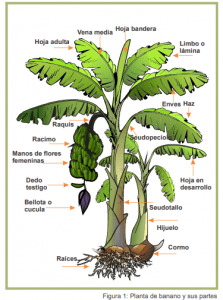 El banano se define como una planta herbácea con pseudotallos aéreos que se originan de cormos carnosos, en los que se desarrollan numerosas yemas laterales o «hijos”.